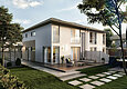 Die geradlinige Architektur gibt dem Doppelhaus Aura 136 seinen urbanen Charakter, die moderne Grundrissgestaltung macht dieses Stadthaus zu einem echten Familienhaus.