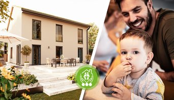 *Der Town & Country Haus Bonus für Neukunden, in Höhe von bis zu 21,64% des entsprechenden Ausstattungspaketes, gilt für alle förderfähigen Massivhäuser aus dem Produktprogramm von Town & Country Haus, die den Anforderungen des Förderstandards EH40 der KFW (Kreditanstalt für Wiederaufbau) entsprechen. Der Rabatt kann nicht auf den gesamten Hauspreis angerechnet werden. KFWG (Klimafreundliches Wohngebäude) ist die erste Förderstufe von KFN (Klimafreundlicher Neubau). Voraussetzung ist neben dem Effizienzhaus-Standard 40 eine Ökobilanz. Hier ist ein zinsvergünstigtes Darlehen von 100.000 Euro je Wohneinheit möglich. Der Rabatt kann ausschließlich auf das Ausstattungspaket, nicht aber auf den gesamten Hauspreis angewandt werden und gilt einmalig. Eine Kombination mit anderen Produkten ist ausgeschlossen. Der Ausgangspreis des Hauses ergibt sich aus der angefragten Region. Nur bei teilnehmenden Town & Country Partnern. Barauszahlung ausgeschlossen Aktionszeitraum: bis 31.12.2024. Es gilt der Tag des Abschlusses eines Verbraucherbauvertrages.